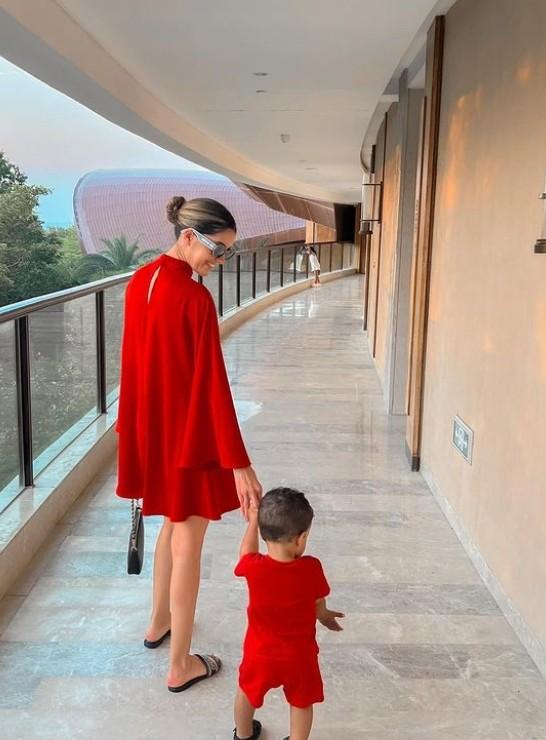 最近两天,法比奥-阿布雷乌的爱妻索菲娅也在社交媒体里晒出了一家人在三亚的游玩照。