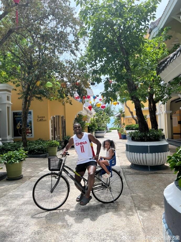照片中,法比奥-阿布雷乌身穿着中国男篮11号球衣,有网友猜测这是易建联的11号战袍。