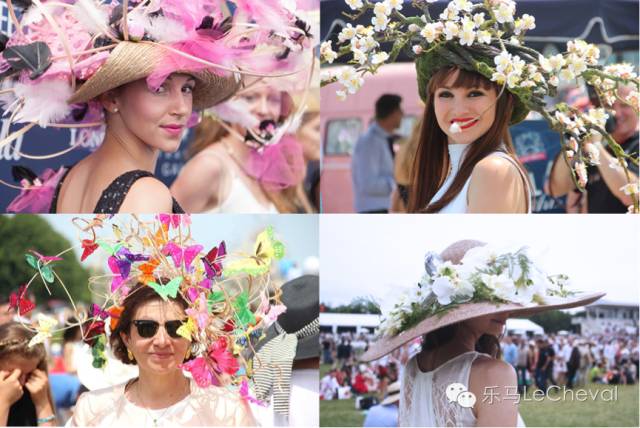 马术观赛着装中最重要的部分就是帽子。有趣的是,对于女士帽子的大小,主办方一般只设定了下限,没有规定上限,仿佛是在鼓励大家宁可“浮夸”,绝不保守。