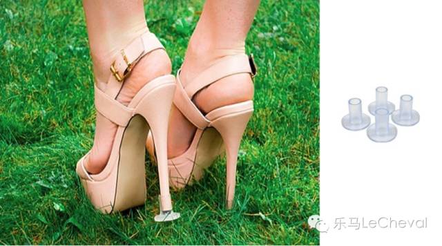 如果实在非高跟鞋不可话,乐马君有个小窍门。女士们可以在高跟鞋跟上套一个鞋跟保护套,然后就可以安心地去比美啦!