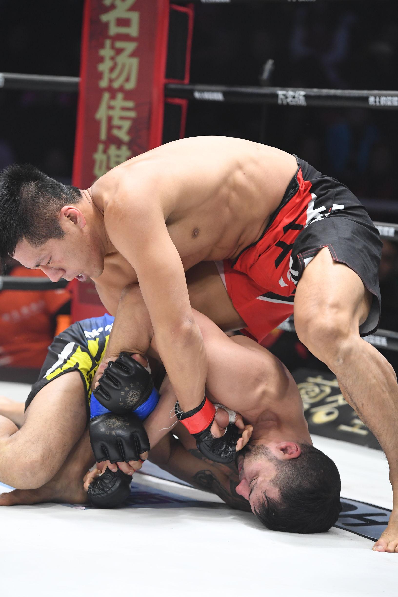 “断头台大师”计县迎战巴西悍将安德森·布鲁诺,一上场就主动进攻,占据优势体位,迅速控制比赛节奏。