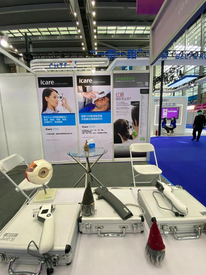 芬兰展台的ICARE回弹眼压计是一种快速、舒适、精确的眼压检测方式,有医用和家用两种版本。作为一种悄无声息、不可治愈的致盲眼病,青光眼的早期发现和持续治疗至关重要。 有效治疗青光眼的方法就是在眼压过高时及时滴眼药水降眼压。