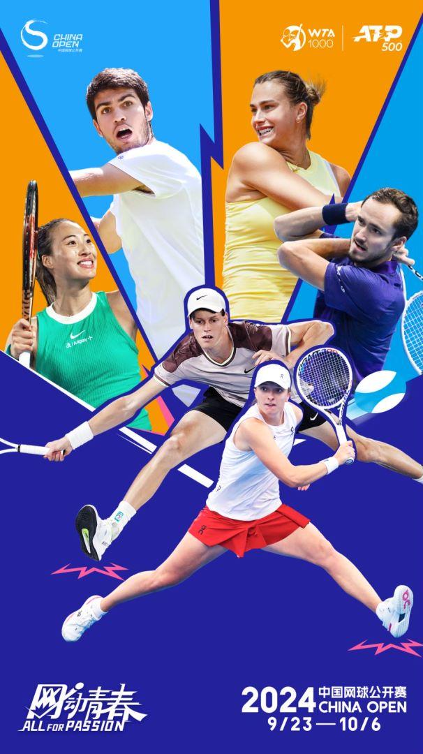 今年中国网球公开赛,秉持“活力中网”的文化核心理念,经过专家组评议,从众多优秀作品中遴选出了“网动青春”(英文口号:All for passion)作为2024中国网球公开赛的赛事主题口号。全新的吉祥物蓝色卡通形象的“阿中”也在发布会上亮相。相关文创产品将在9月初上线。中网主视觉采用四大主题色作为画面主色,画面设计上模拟网球运动的轨迹,提炼了钻石球场元素。
