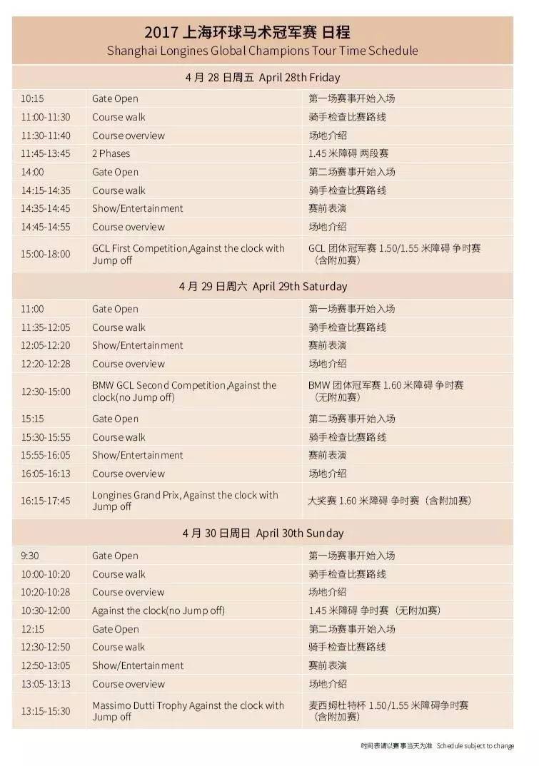 下面便是2017浪琴环球马术冠军赛的完整赛历:
