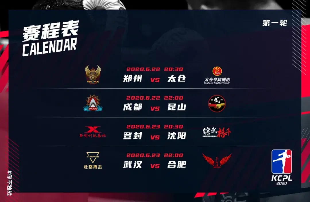 2020赛季KCPL昆仑决格斗俱乐部职业联赛,将于6月22日-23日两天,举行本赛季的首场揭幕战,本次揭幕战赛事将有八家俱乐部战队出战,进行第一轮、共计四组积分赛对阵。