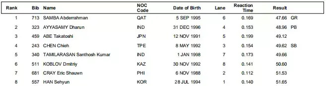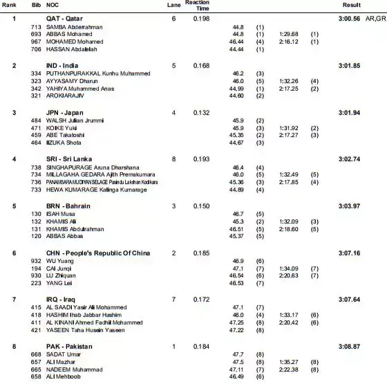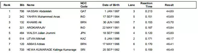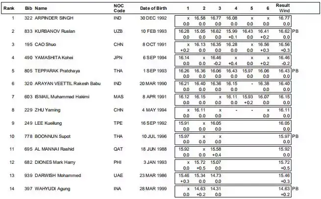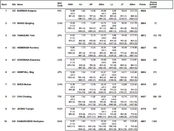 今天我们来看2018年雅加达亚运会田径比赛的官方全成绩,田径大本营为大家截图整理如下。