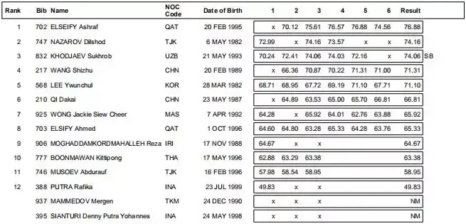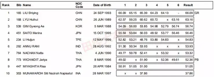 中国选手涂文吉第十,创PB。