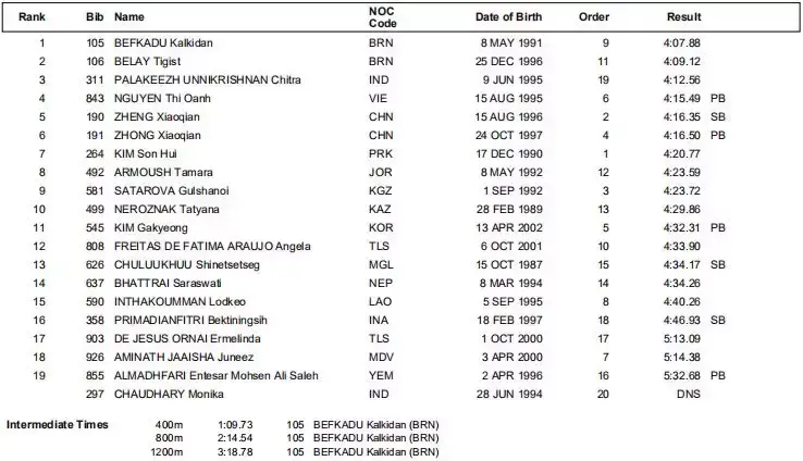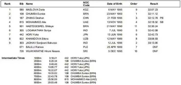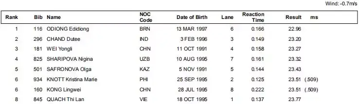 郑小倩和钟晓倩收获第五和第六,钟晓倩创PB。