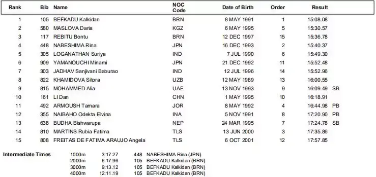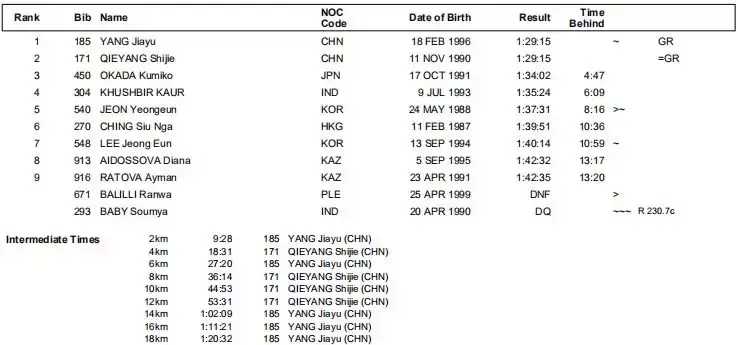 杨家玉和切阳什姐包揽前两名,创亚运会新纪录。