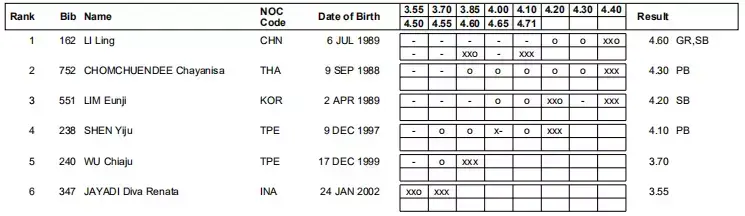 李玲蝉联冠军并大幅度提升了亚运会纪录。