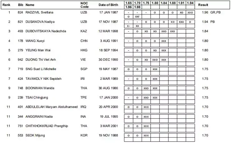 NR=Nation Record 国家纪录