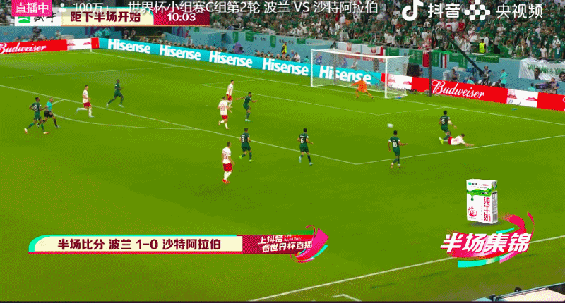整个上半场,虽然沙特占据了控球优势,但波兰队通过长传多次创造机会,也在抓住机会后直接破开沙特球门。半场战罢,波兰暂时1-0领先沙特。