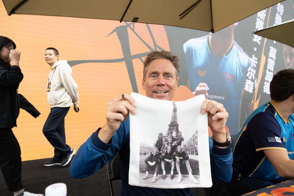 确如佩尔森所言,在WTT中国大满贯期间,瑞典队都是一家子整整齐齐参加活动。球迷见面会上,有位球迷送给佩尔森一个帆布袋,上面印着他年轻时和队友们在埃菲尔铁塔下的合影。