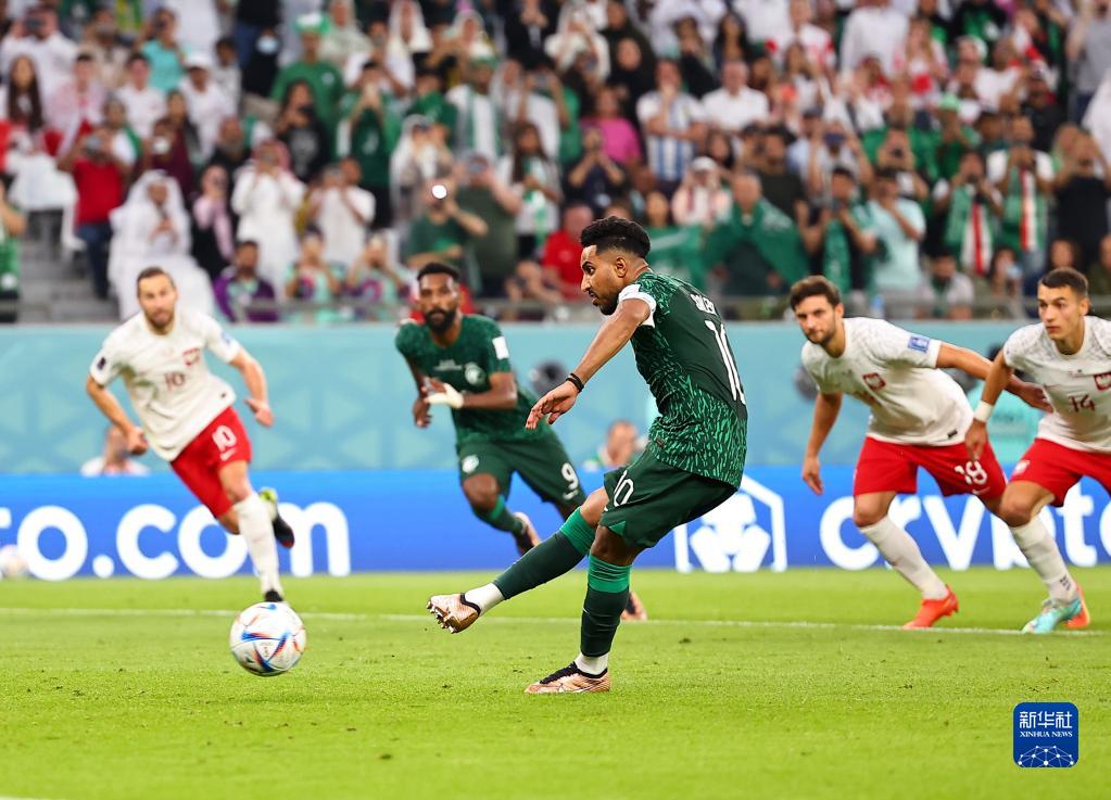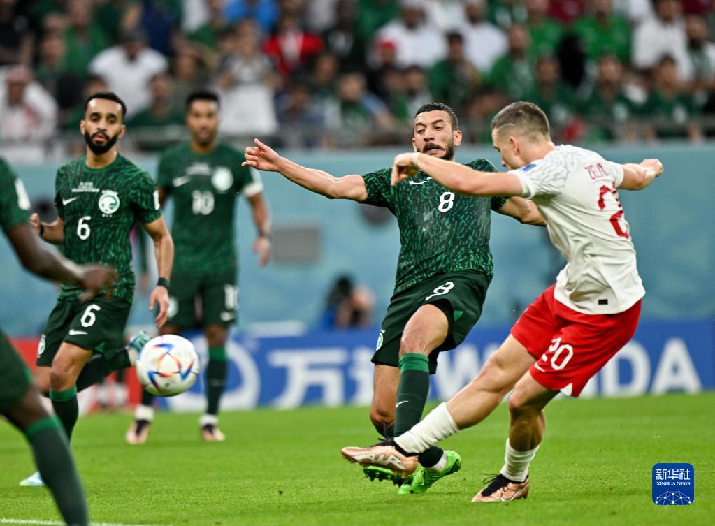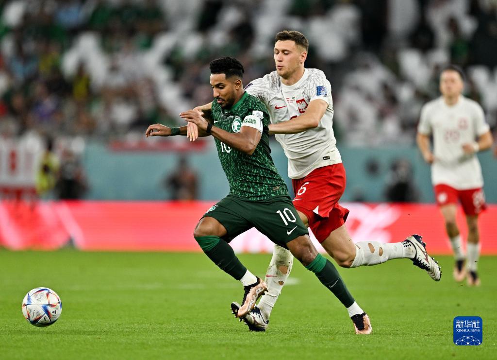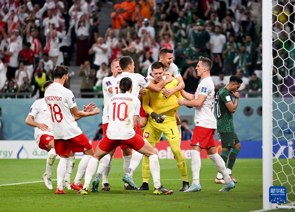 当日,在卡塔尔赖扬教育城球场进行的2022卡塔尔世界杯足球赛C组比赛中,波兰队以2比0战胜沙特阿拉伯队。