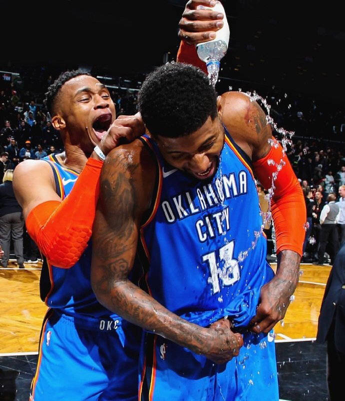 可乔治不这样想,他喜欢雷霆队的氛围,喜欢和威少在一起打球,喜欢和格兰特的基情满满,他选择了留下。