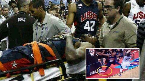 NBA中最恐怖的断腿事件,我觉的还是凯文威尔在2013年发生的那次。那是一场NCAA的八强争夺战,杜克大学VS路易斯维尔。路易斯维尔队中的凯文威尔在一次追访的过程中,可能一开始是跳起来追球,结果落地时因为没调整好姿势,导致右小腿当场断成了两半,断骨都从皮肉中凸出来了,看的一清二楚,极度恐怖。