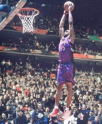 既然说到扣篮,哪又怎么少得了卡特的身影呢?卡特参加过多届的扣篮大赛,更加是用扣篮征服了全世界的球迷,也征服了联盟中的所有对手。2000年NBA扣篮大赛上,卡特用一记技惊四座的罚球线双手扣篮拿下了比赛的胜利,要注意这里不是单手扣篮,而是双手。双手比单手的难度对于球员的起跳高度和滞空时间简直是成倍的增长。