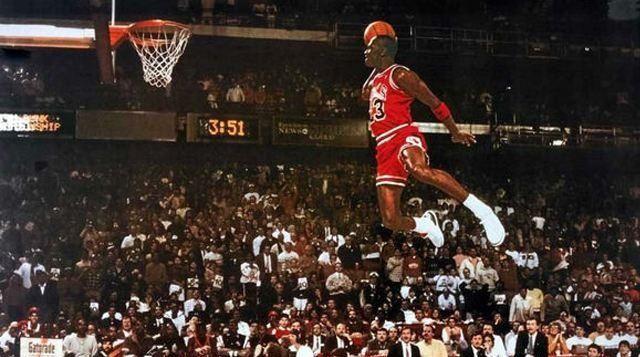 乔丹的罚球线扣篮可以说是经典中的经典,1987年的扣篮大赛中,乔丹面对威尔金森的强大压力下,使出了罚球线空中漫步扣篮这一招,从而一举拿下了扣篮王的称号。要知道那个年代的球员们穿的都是没什么科技的球鞋,而乔丹就是凭借惊人的身体素质和创造力,将罚球线扣篮推广向全世界。虽然乔丹并不是第一个用罚球线扣篮的球员,但是显然他的影响力同样是巨大的。