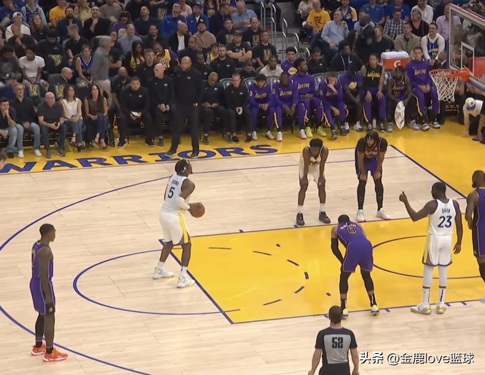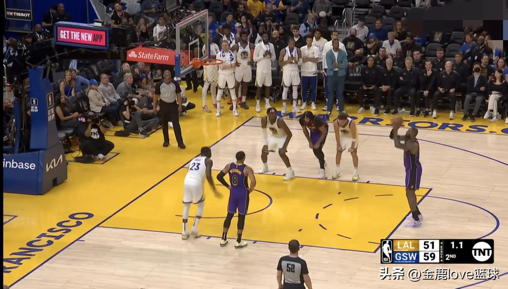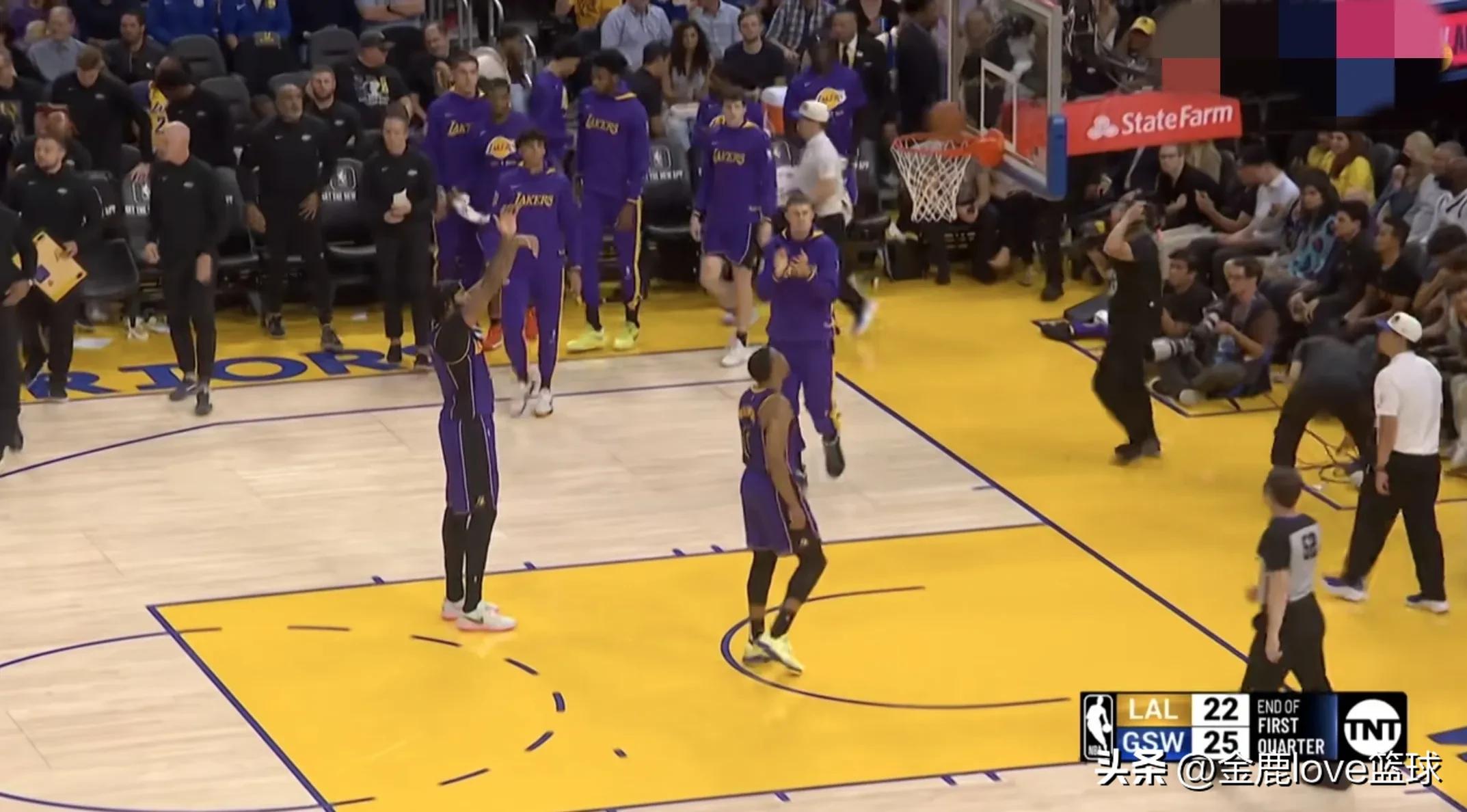 湖人浓眉哥打成2+1,把比分追平!湖人22-22勇士!
