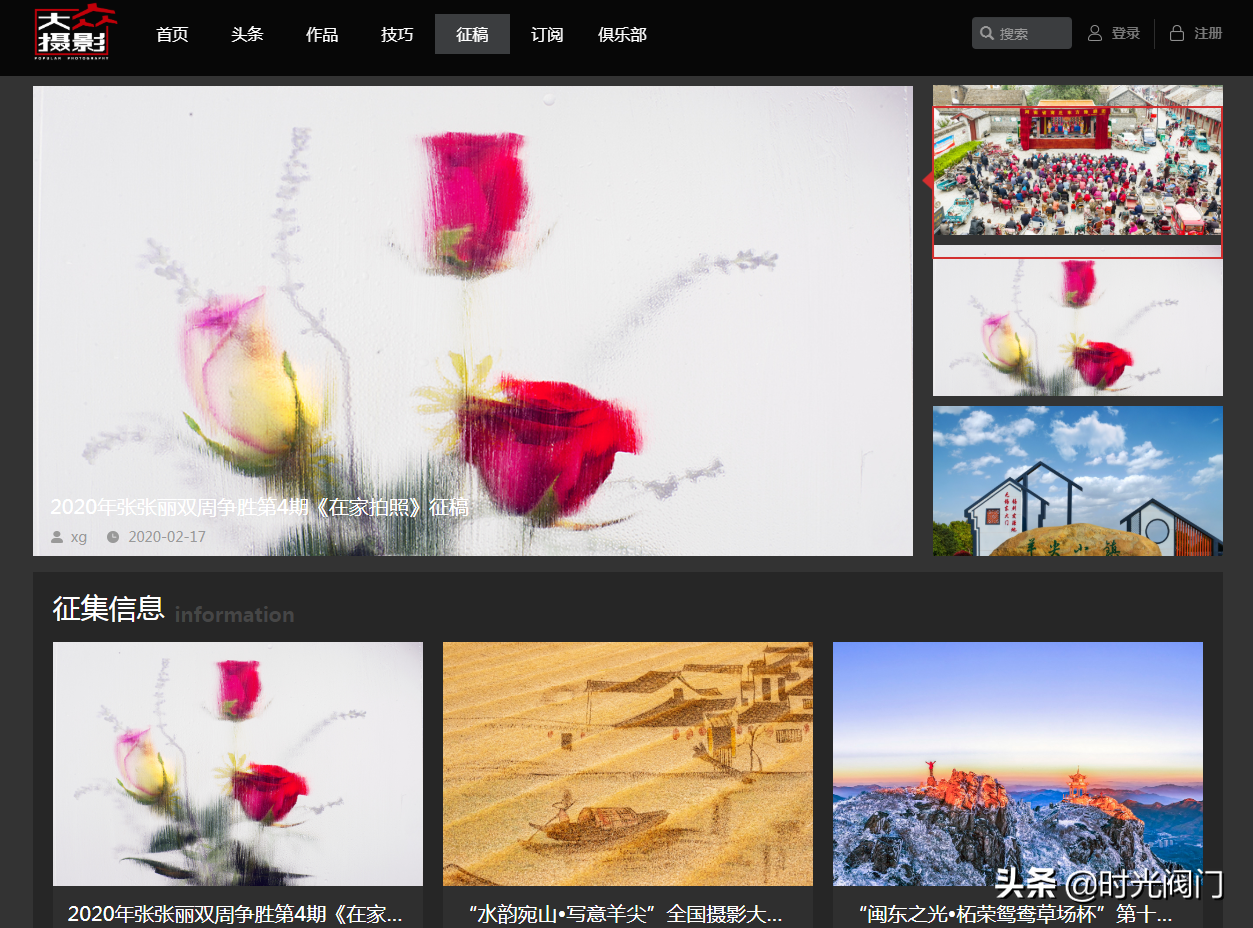此网站虽然名头取得有点夸张,但是这家网站还是比较务实的,平台经常举办摄影比赛以及分享一些优秀的获奖摄影作品,笔者曾经在这家网站举办的摄影比赛上获奖。在浏览器打开上述链接,直接进入摄影大赛详情页,点击你想参加的摄影比赛即可。