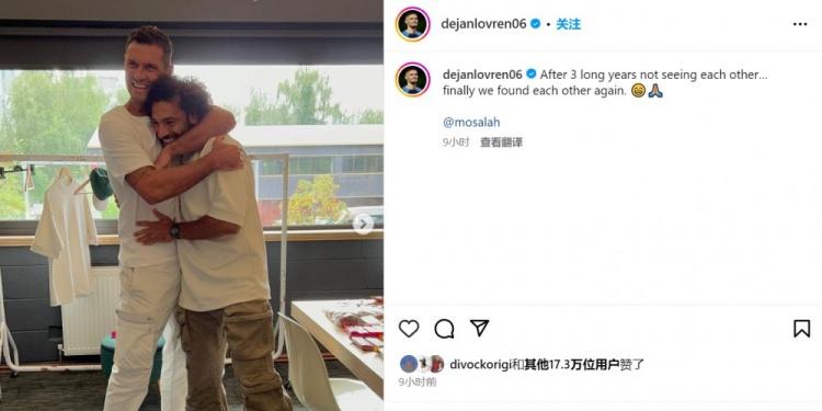 洛夫伦和萨拉赫曾在利物浦共事多年,洛夫伦晒出二人合影,并写道:“漫长的三年没见,终于我们又找到了彼此。”