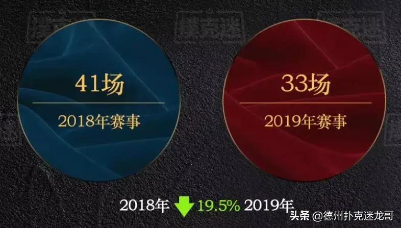 原因是一些横跨全年系列赛事的取消;如玩家熟悉的“五坛系列赛”等;部分港澳台地区的赛事取消或搬迁,如“红龙杯”“APPT”等,境外赛事不在本数据之内。