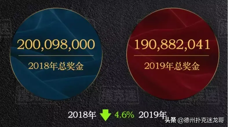 2019年总奖金相比于2018年赛事总奖金下降4.6% 。