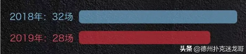2019年总计33场赛事 ,与2018年相比场数减少8场 。2019年部分赛事相继取消,但今年俱乐部的赛事发展迅猛,以老虎杯为代表的俱乐部系列赛事横跨了整个年度,从而使得2019年的国际扑克线下市场依然繁荣。