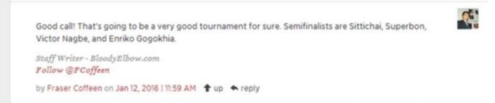 近日,美国搏击历史学家弗拉瑟·考芬在世界著名格斗媒体“血肘网”撰写了一篇名为《2016自由搏击大前瞻》的专栏性文章。文中预览了2016年全球搏击界从赛事到拳手表现的方方面面,并对这一年里中国搏击赛场,尤其对昆仑决赛事持有较高的期待。