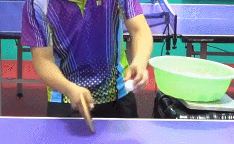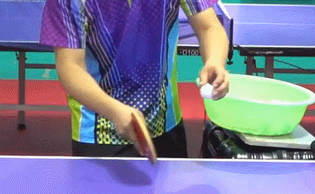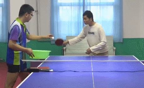 派球手腕的调整很重要,很多人派球手腕是硬的、勾着的。手腕在派球时候一定要柔和,特别是派不转球。初学者打正手攻球派一般的不转球。大拇指和食指把球夹住,然后轻轻一放。不能太高,差不多和肩膀略低一点,胸前的高度。