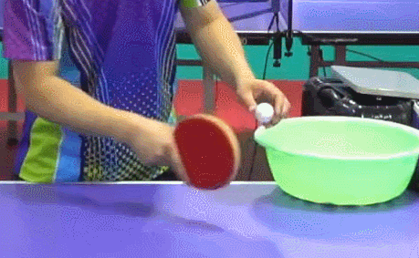 发多球的盆子建议放在身体侧面,靠近球网的位置。没有条件可以把这个装多球的盆子放在球桌上面也可以。盆子不要太大也不要太深了,太深手不好去抓球。太小容易抓不稳球。