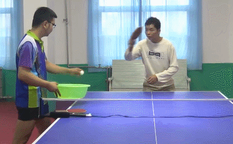 还有一种派球。比如说他动作变形,托的话看不到球和其它动作。可以站在他侧面派球,时常地去调整他的拍面的角度。比如打球的时候拍面有点翘,那你就停下来把拍面压一压。可以到他身边去派,学员会比较好掌握。