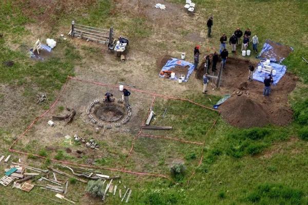 · 警方发现两个孩子尸骸的后院。