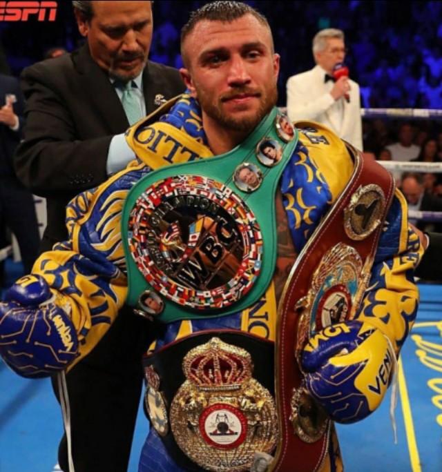 轻量级(135磅) 乌克兰人 瓦西里·洛马琴科(14-1-10ko) 现WBC,WBA超级,WBO世界拳王。