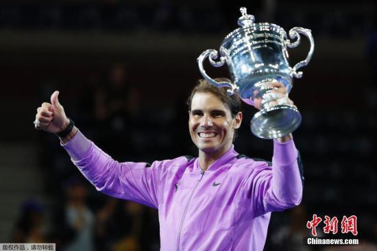 资料图:纳达尔捧杯庆祝。