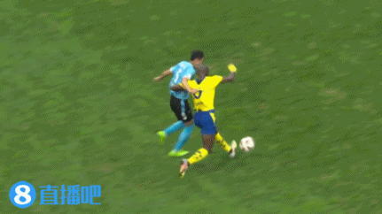 第45分钟,杨贺抢球铲倒吕焯毅,主裁判出示黄牌警告!↓