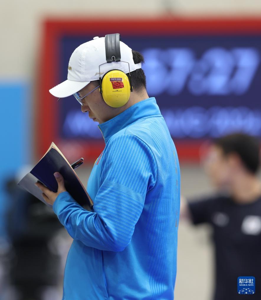 8月5日,中国选手李越宏在比赛间隙。新华社记者 赵丁喆 摄