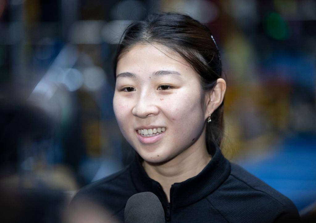 10月17日,中国短道速滑队队员公俐接受媒体采访。新华社记者 雒圆 摄