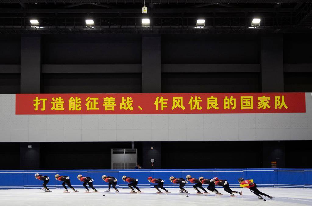 10月17日,中国短道速滑队队员在训练中。新华社记者 雒圆 摄
