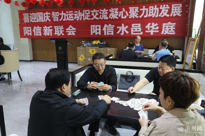 滨州日报/滨州网阳信讯 近日,阳信新联会联合水邑华庭举办了迎国庆“扑克升级比赛”。