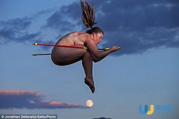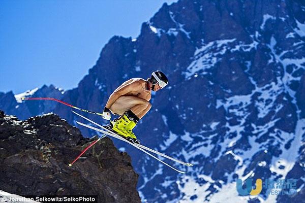 运动员们在冰天雪地中赤身裸体,他们或飞翔,或跳跃,或旋转,或急速滑下,