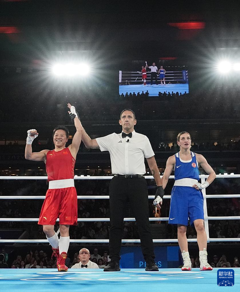 当日,在巴黎奥运会拳击项目女子50公斤级决赛中,中国选手吴愉战胜土耳其选手恰克尔奥卢,获得冠军。