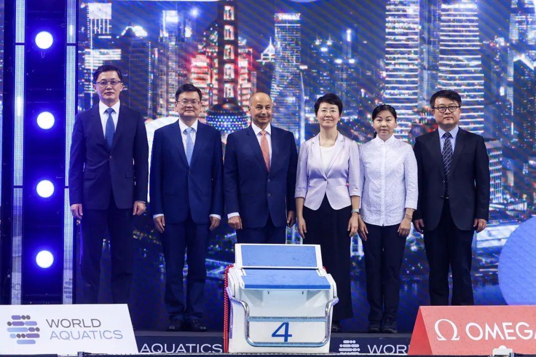 上海市副市长解冬致欢迎词,她代表市政府和组委会向来自世界各地的运动员、教练员、裁判员、官员和观众表示热烈欢迎,她表示,上海将以专业的组织、周到的服务、高效的保障,营造安全、公平、舒适的赛事环境,并期待各位游泳健儿在拼搏中彰显友谊,共享对游泳运动的热爱与执着。