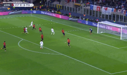 就在法国队球员抱头绝望时,一盆冷水直接浇下。37秒后,布斯克茨后场精准长传,奥亚萨瓦尔反越位前插但停球踉跄,眼见单刀机会就要被破坏,于帕梅卡诺解围送礼,奥亚萨瓦尔突入禁区抽射远角得手!西班牙1-0领先!