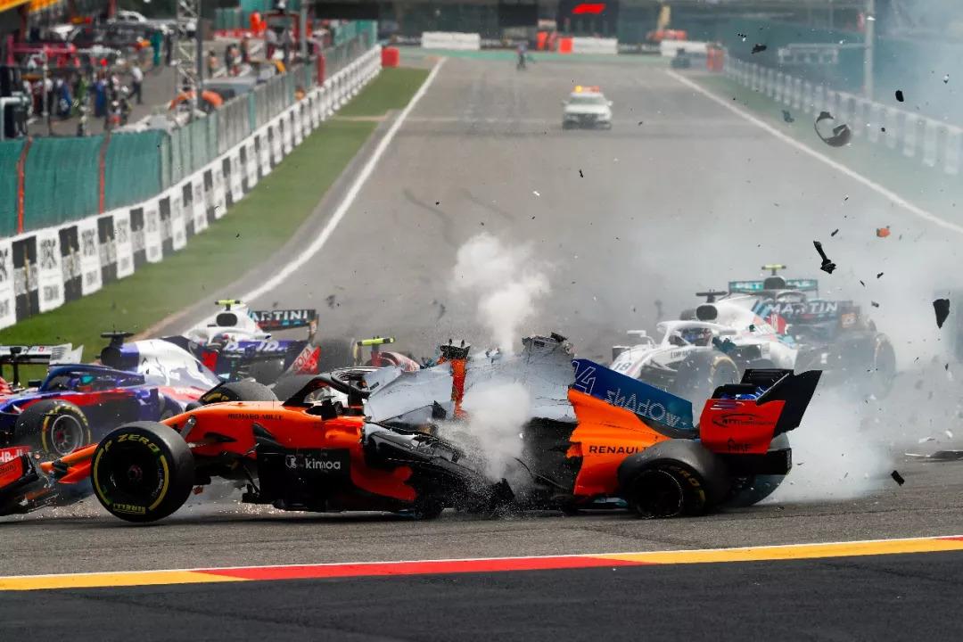 比赛正式开始!维特尔发车后超过汉密尔顿直接上到第一,而后面则是乱成一片,引发安全车。一边是霍肯伯格赛车锁死追尾阿隆索,导致阿隆索直接从勒克莱尔车顶“飞过”,三位车手直接退赛。
