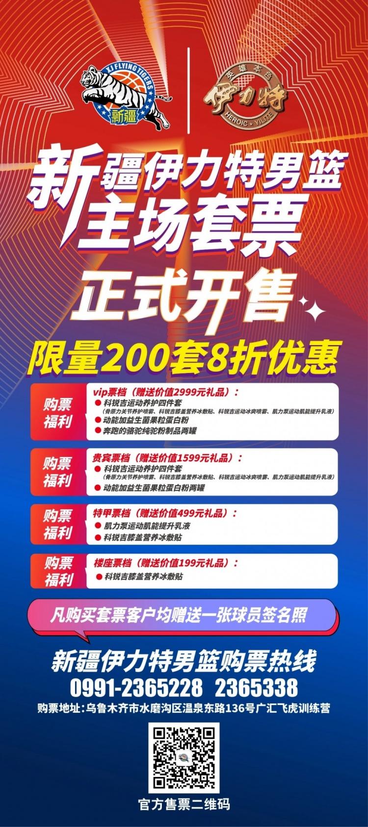 直播吧9月30日讯 今天,新疆男篮公布了新赛季常规赛主场门票信息。