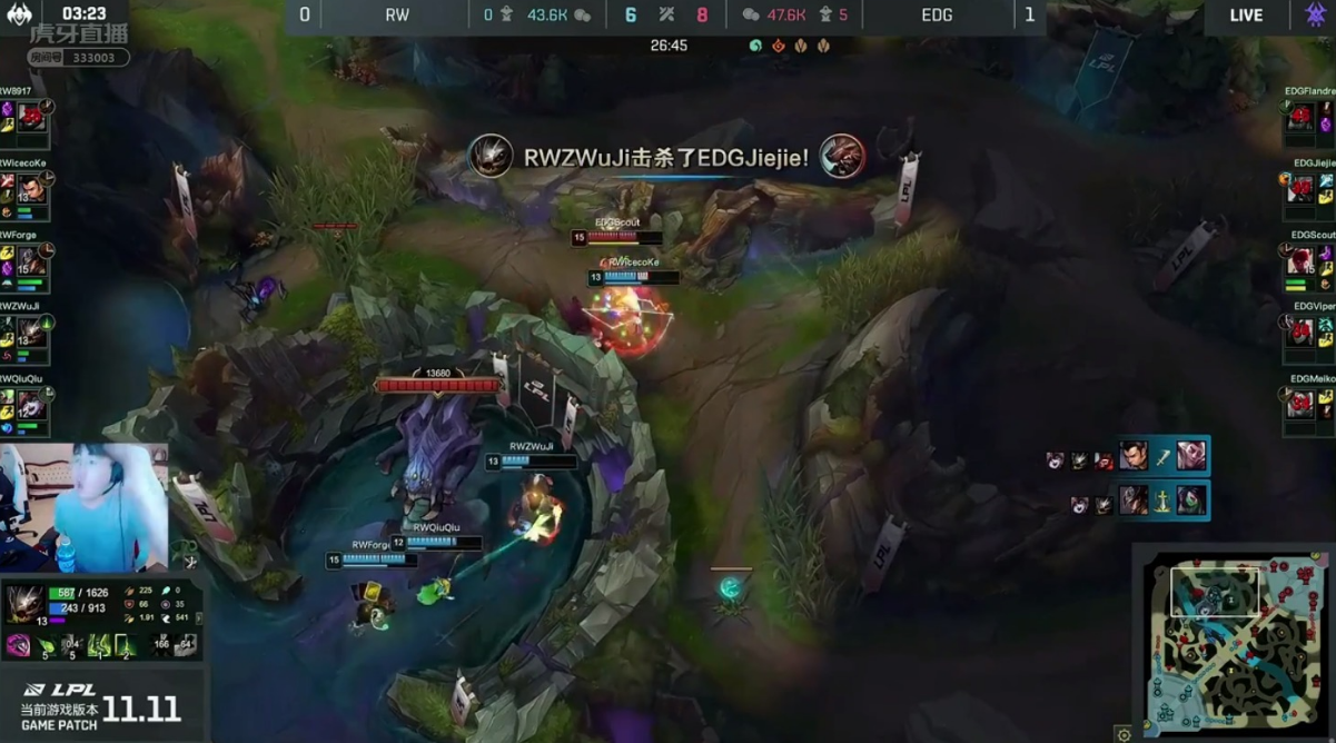 特别是RW大龙团,直接看呆姿态,张无忌大嘴爆炸输出直接击溃EDG土龙魂,手握土龙魂的EDG选择强开大龙,但是追赶过来的RW在张无忌大嘴疯狂输出下EDG反而团战土崩瓦解,土龙魂在大嘴面前根本不堪一击,这顿犀利操作直接看呆姿态。大嘴这个英雄的翻盘能力是真的强,一打五的能输出能力!
