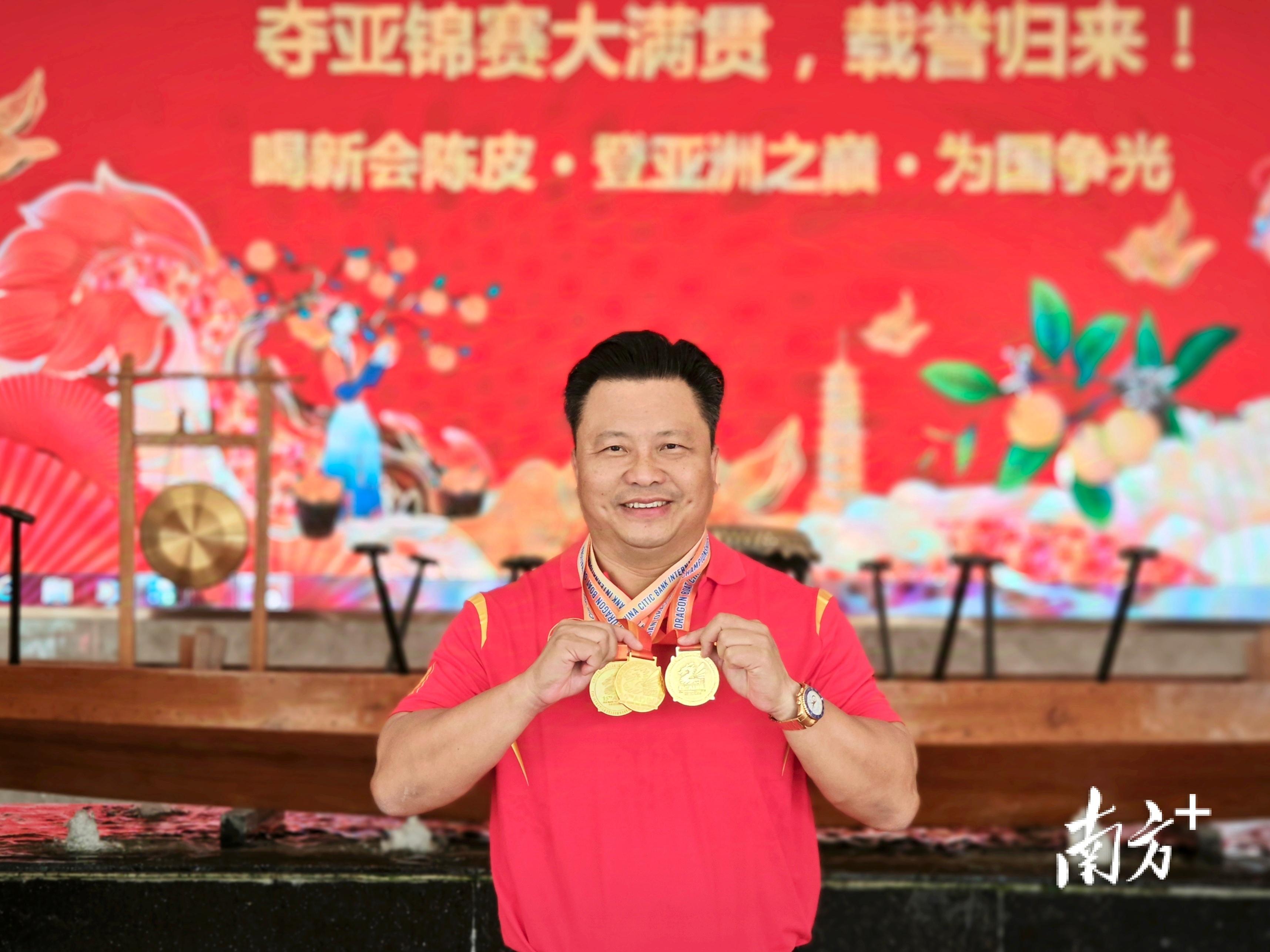“我们龙舟队的口号是16字龙舟精神——‘齐心协力、全力以赴、力争上游、永不言败’。”在廖华照的影响下,他的儿子廖长亮、廖长成也早早接过“衣钵”,既在龙舟赛场上奋楫搏浪、挥桨竞渡,又推动打造“陈皮+龙舟”的企业文化品牌。