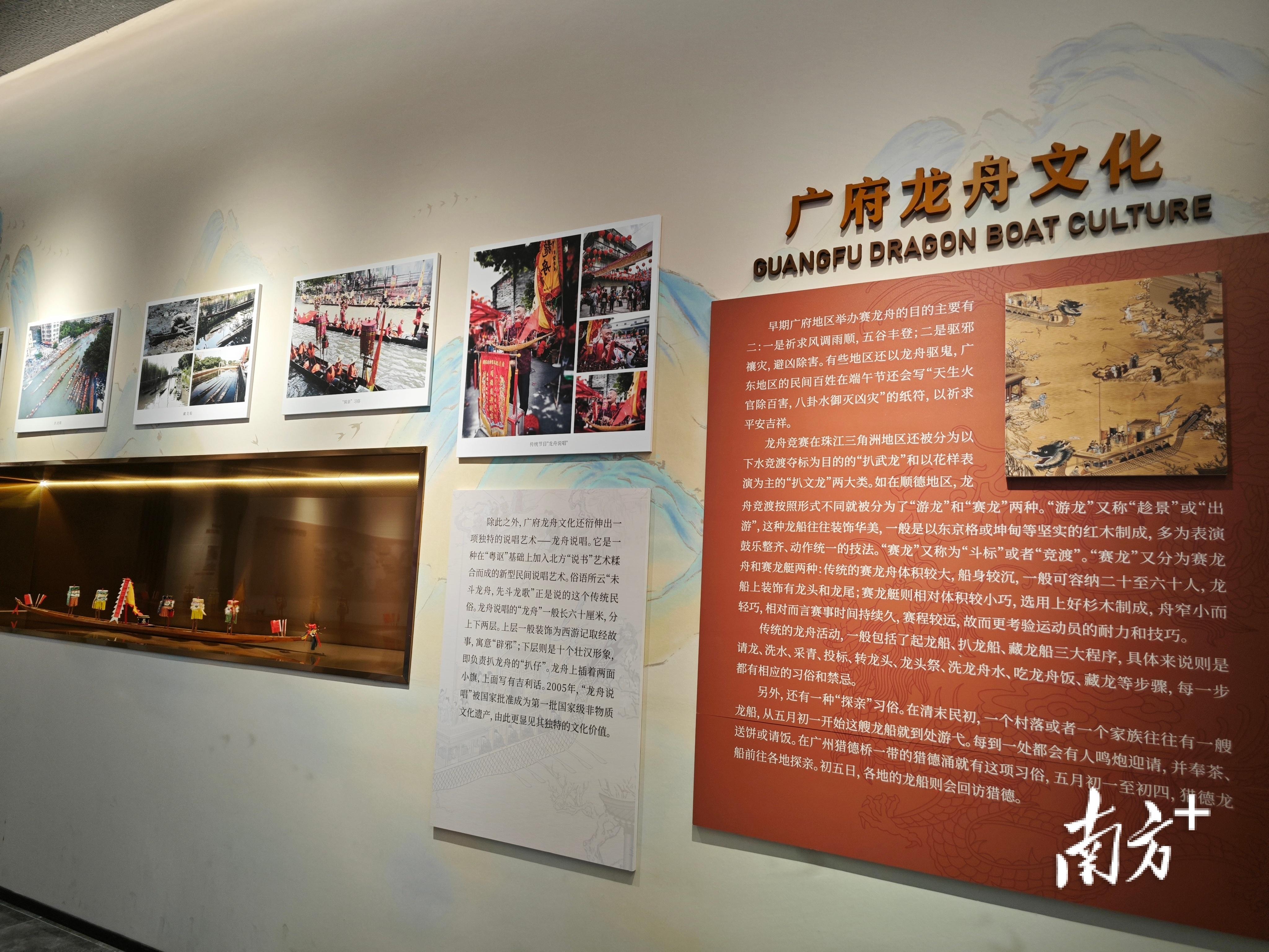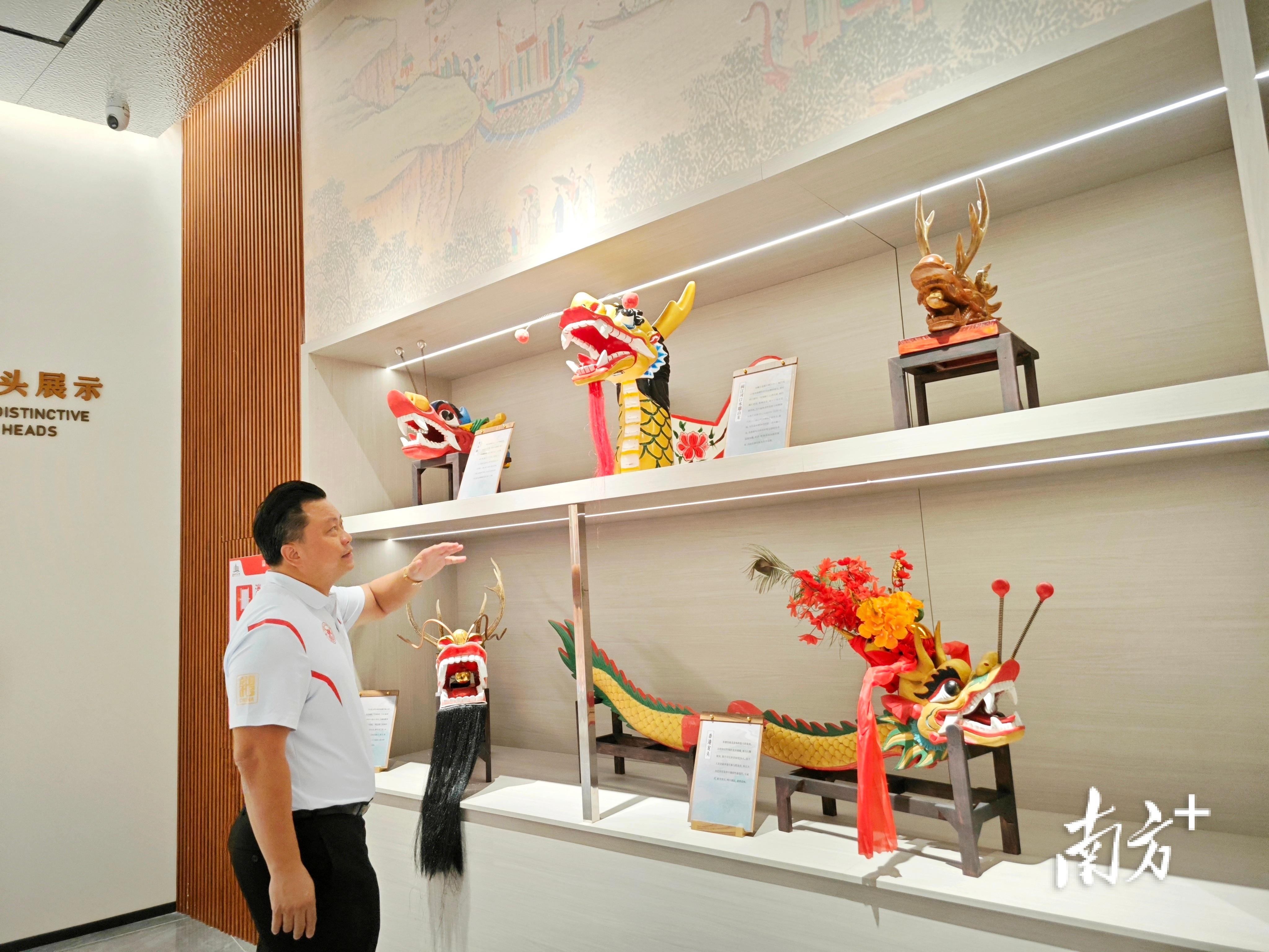 位于泓达堂新会陈皮产业小镇的中华龙舟文化主题馆,于今年农历二月初二“龙抬头”启用,全方位展示了中华龙舟的起源与发展,以及丰富多彩的龙舟风俗于体验。其内两艘百年龙舟分别占据一层、二层的“C位”。龙舟的制作人廖关浩正是廖华照的父亲,其手工雕刻的龙头活灵活现、色彩绚丽,船身的划痕铭刻着往日的战绩与荣光。