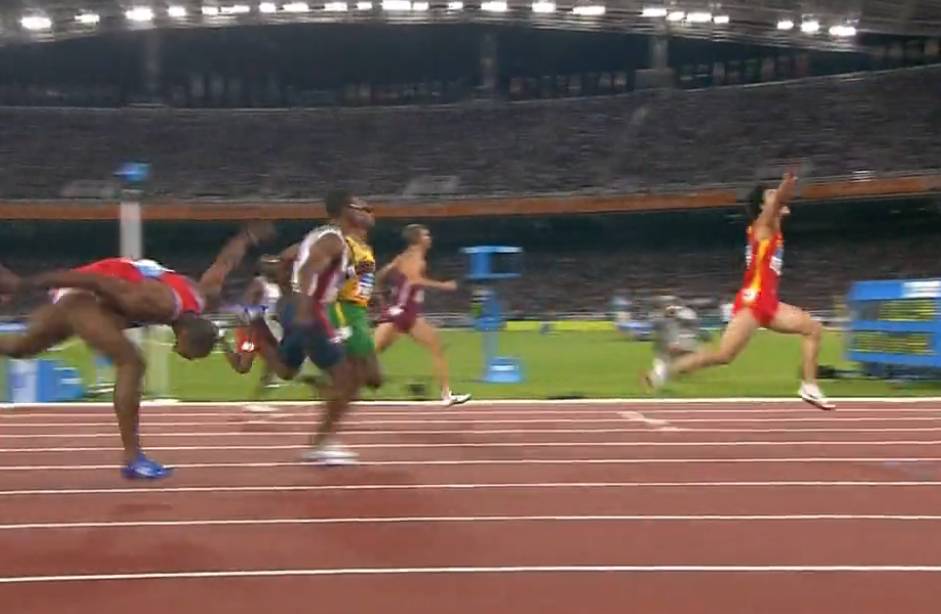 比赛过程并没有太顺利,第一次起跑第8道的古巴选手就向裁判示意起跑器不是很舒服,当然,这或许也只是战术而已,这是那些老将惯用的伎俩……